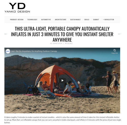 A big thank you to our friends at Yanko Design for publishing a review of our shade canopy.